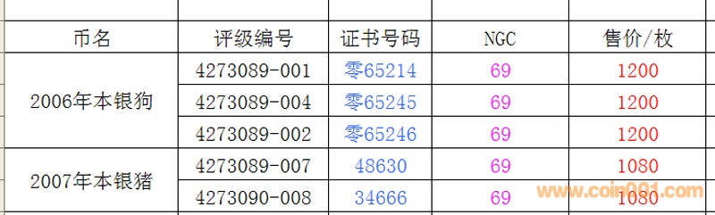 評級普通(精制)紀念幣交易