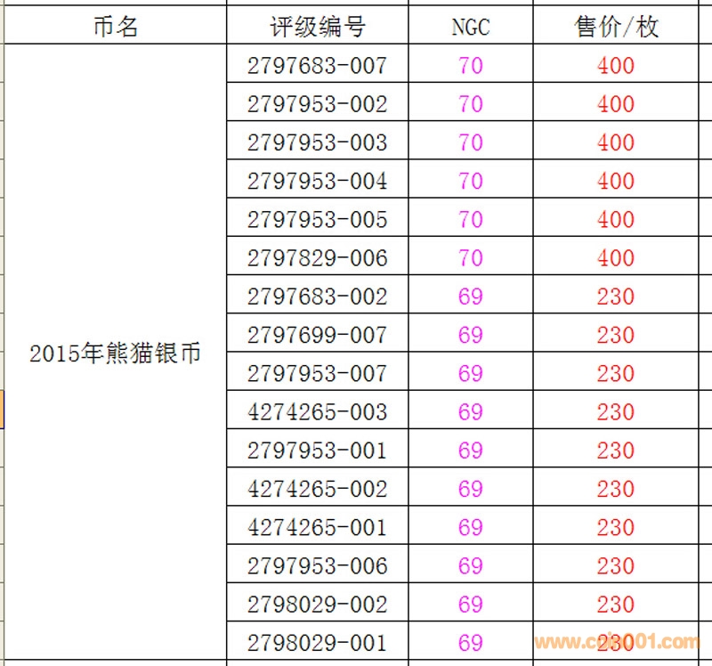 售熊貓系列;2001年熊 ..