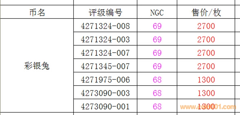 評級普通(精制)紀念幣交易