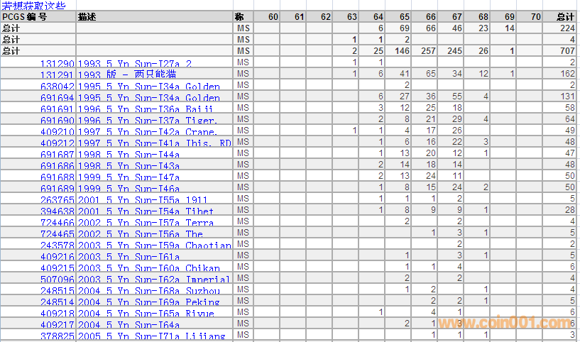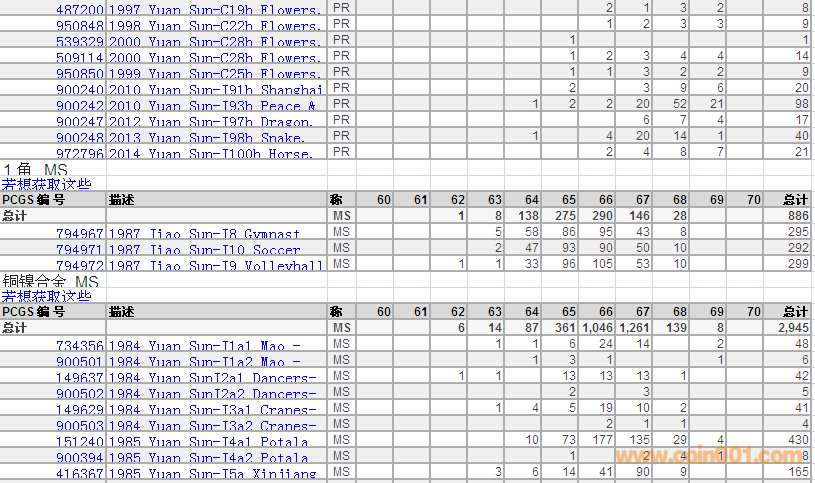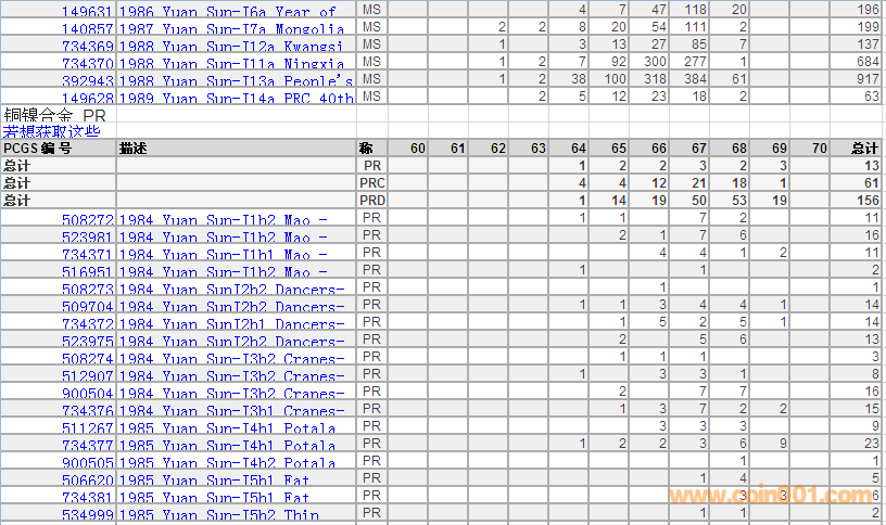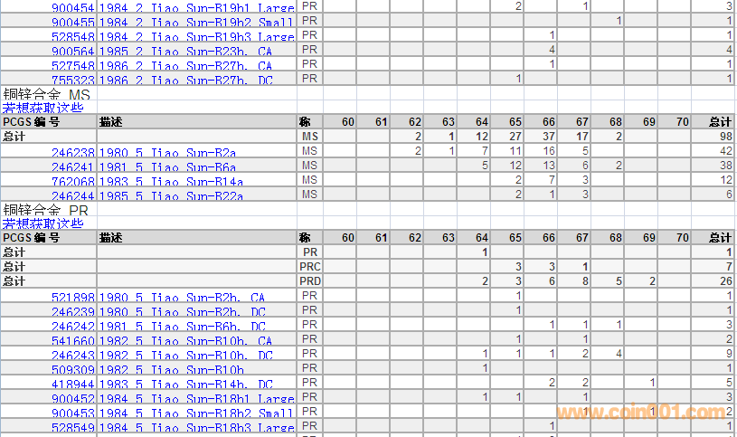 PCGS硬幣評級數(shù)量報告 ..