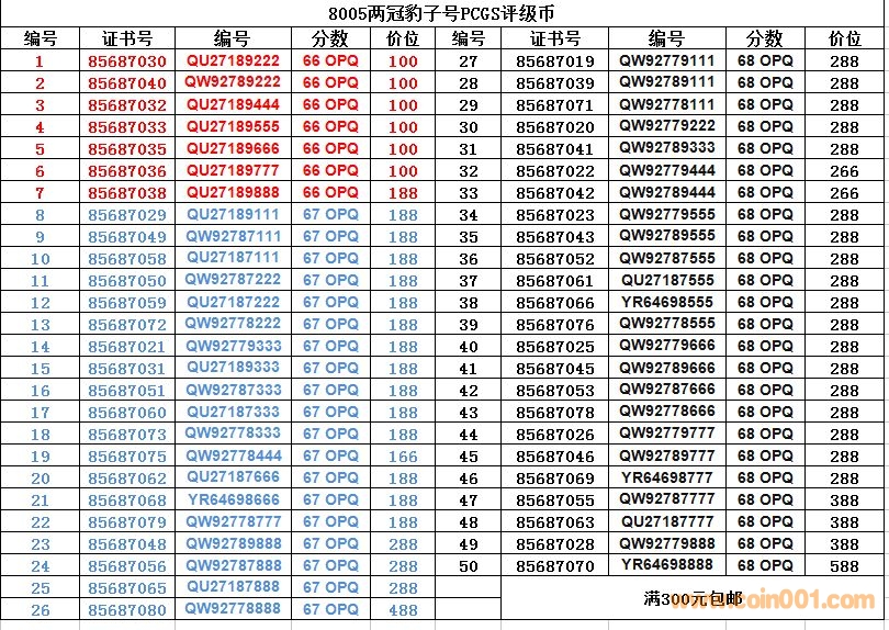 8005兩冠豹子號PCGS評級 ..