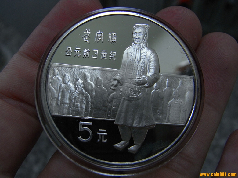 中國杰出歷史人物第1組金銀紀念幣 秦始皇(前259-前210) 秦王朝的開國皇帝。嬴姓,名政,39歲稱帝。自公元前230年至前221年,先后滅韓、魏、楚、燕、趙、齊六國,終于建立了中國歷史上第一個統(tǒng)一的、多民族的、專制主義中央集權(quán)制國家--秦朝。 兵馬俑 秦始皇陵隨葬陶兵馬雕塑群。1974年發(fā)現(xiàn)于陜西西安臨潼安塞鄉(xiāng)西楊村。現(xiàn)已出土的數(shù)千件與真人真馬等高的兵馬俑軀體采用泥條盤筑法塑造,頭像則運用模制加手塑的方法制作。它標志著秦代雕塑藝術(shù)的成就,再現(xiàn)了秦軍威武雄壯的精神風貌,體現(xiàn)了皇權(quán)的極度威嚴。
