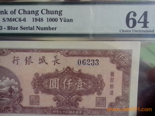 稀少存世長(zhǎng)城銀行,早期雙馬耕地壹仟元,已知評(píng)級(jí)冠軍分?jǐn)?shù),64分極難得,菱形防偽水印版4000