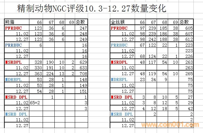 精制動(dòng)物NGC評(píng)級(jí)數(shù)據(jù) ..