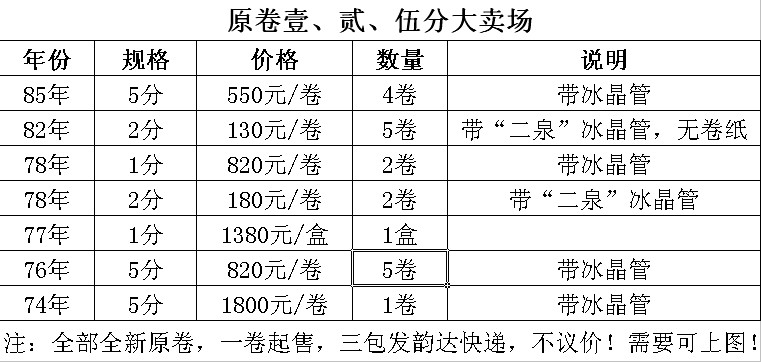 出售稀少年份的全新 ..