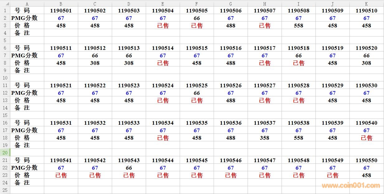 評級普通(精制)紀念幣交易