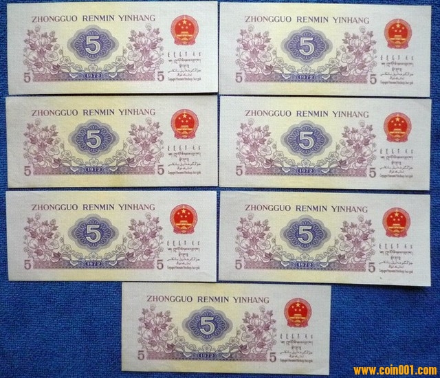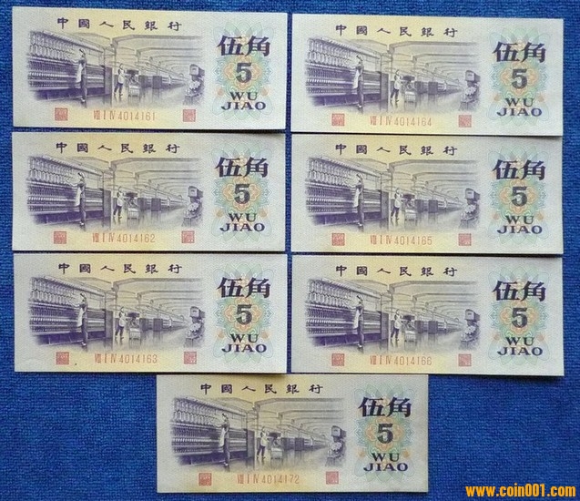 三版幣平版水印5角7張 ..