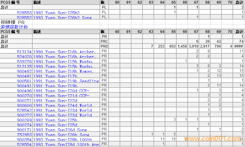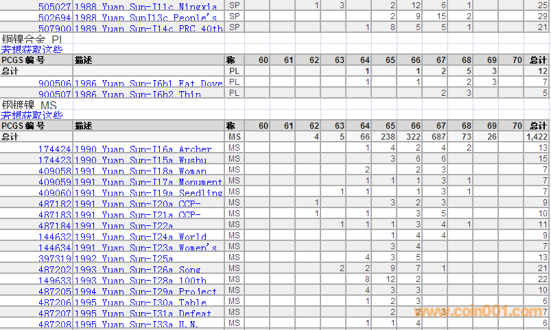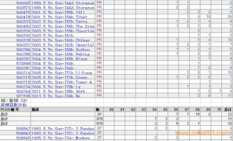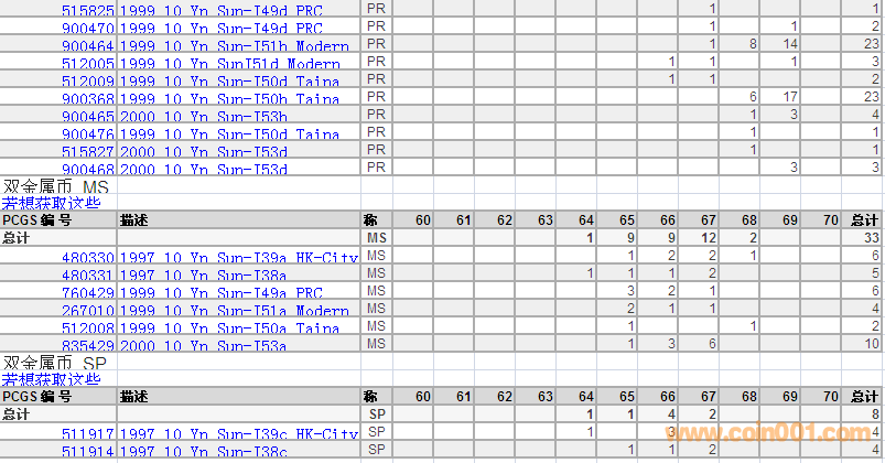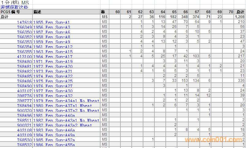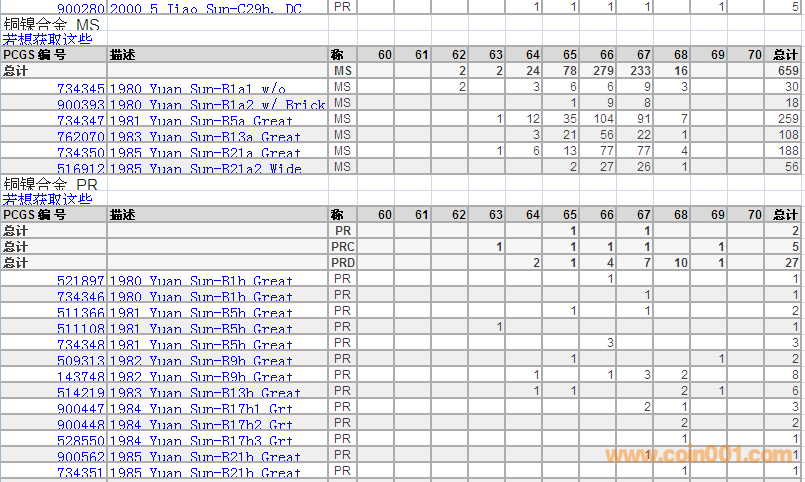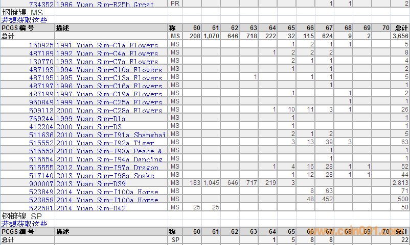 PCGS硬幣評(píng)級(jí)分?jǐn)?shù)分布 ..