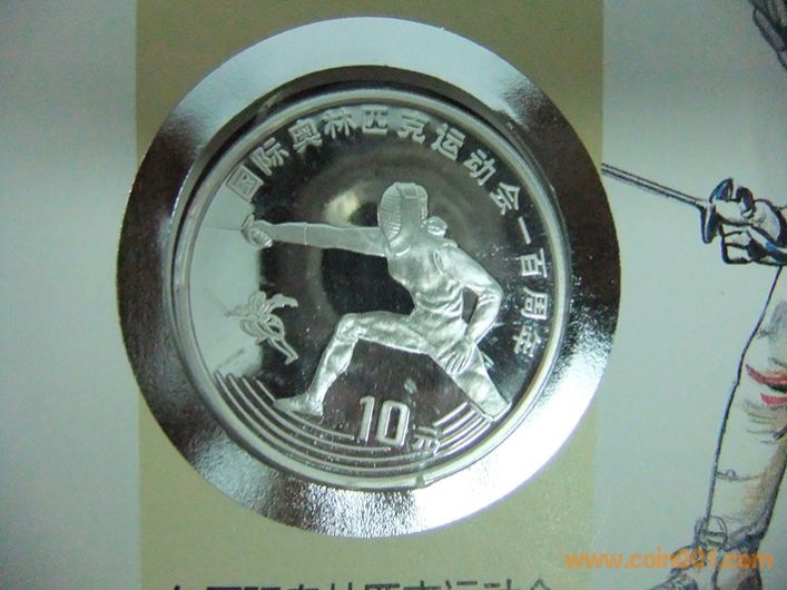 中國國際奧林匹克運(yùn)動(dòng)會(huì)一百周年擊劍10元精制紀(jì)念銀幣封2枚 800元