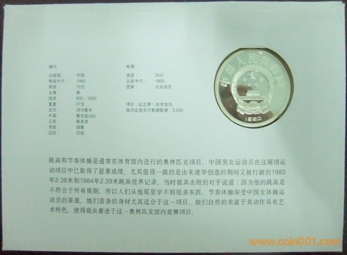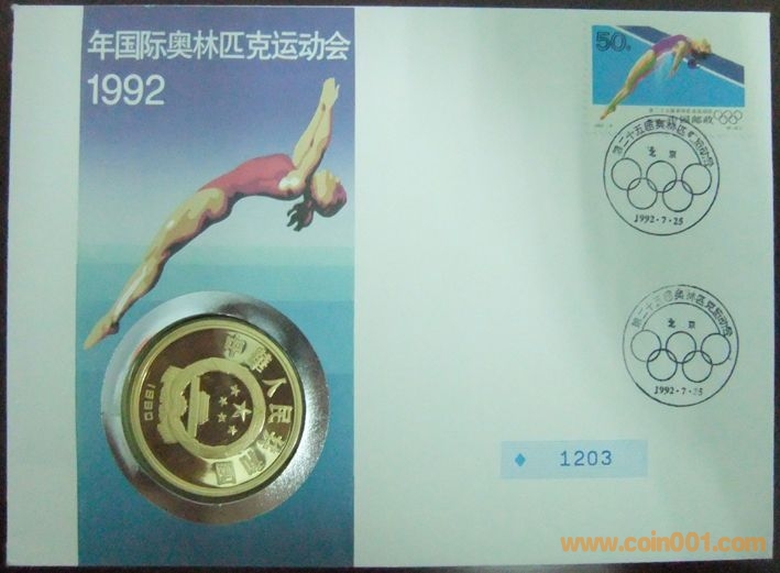 中國1992年國際奧林匹克運(yùn)動(dòng)會(huì)跳水10元精制紀(jì)念銀幣封 800元