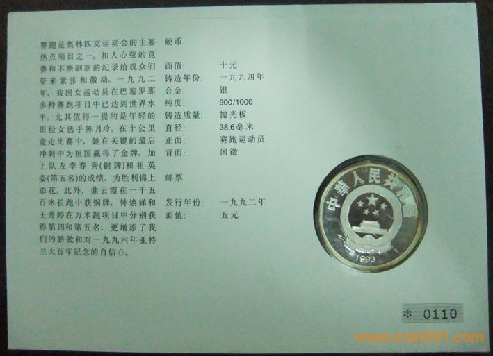 中國國際奧林匹克運(yùn)動(dòng)會(huì)一百周年男子短跑10元紀(jì)念銀幣封2枚 800元