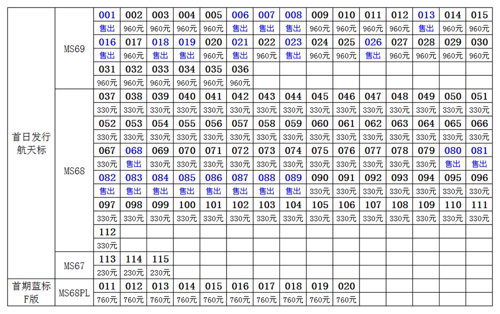 航天幣首日標及首期 ..