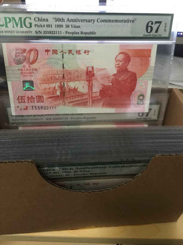 建國(guó)鈔有刀貨送評(píng)的號(hào)碼段是55922101一55922150 五十連號(hào) 全程無(wú)47的普通號(hào)碼66分的450元 67分的售550元!具體看圖中的!