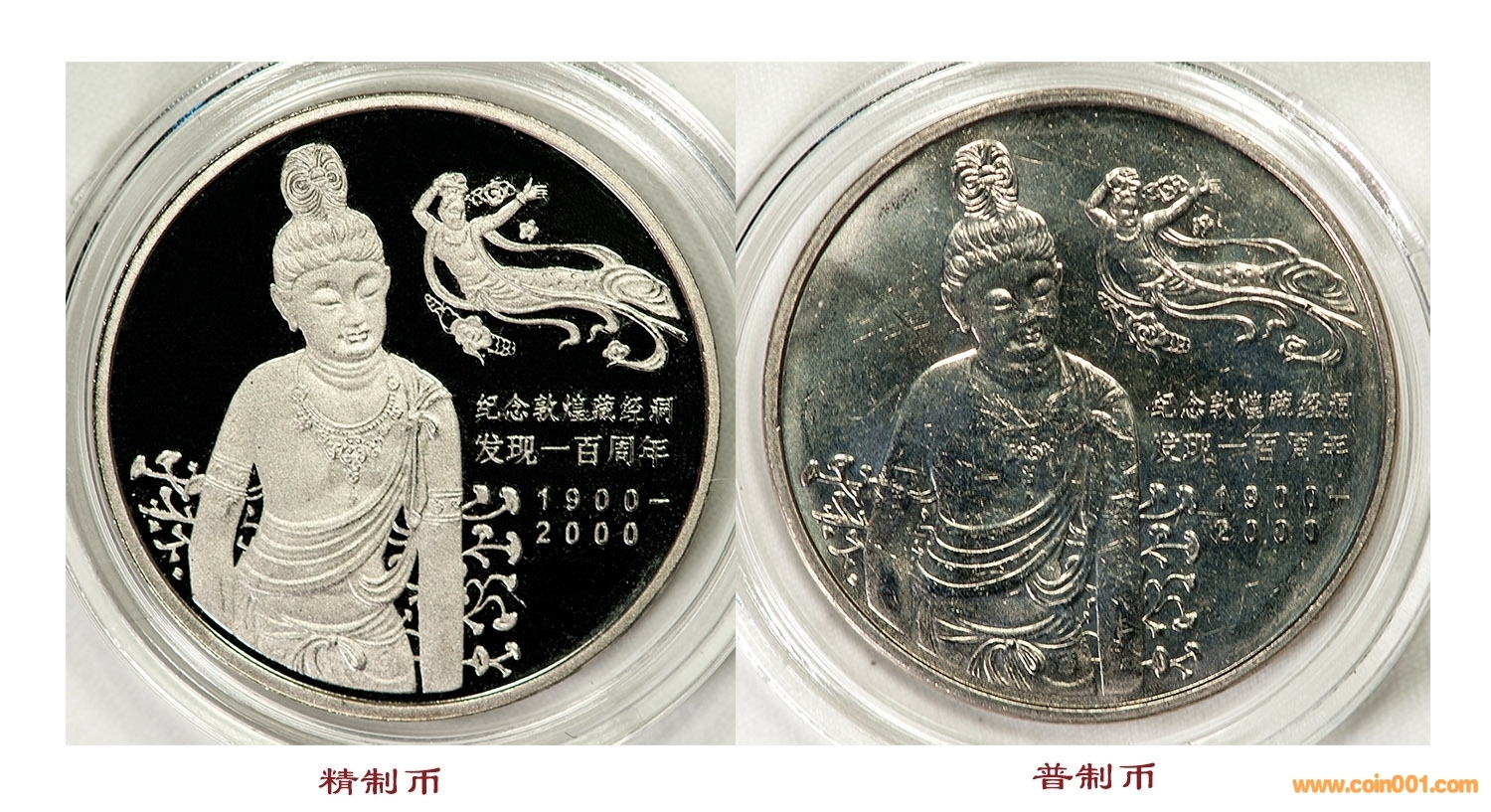 精制幣是紀(jì)念幣的特殊形式。其規(guī)格、圖案、成分等技術(shù)參數(shù)與一般的普制幣完全相同,但是鑄造模具不同。精制幣的模具底板拋光后鍍鉻(鉻單質(zhì)的硬度為9,等同于紅寶石)提高模具硬度,圖案部分使用噴砂工藝,坯餅采用逐枚手工拋光處理并進(jìn)行單枚多次壓印,從而使幣面達(dá)到鏡面平整、浮雕立體的效果。上一張資深收藏家李代平先生拍攝的對比圖,感受一下精制幣之美。