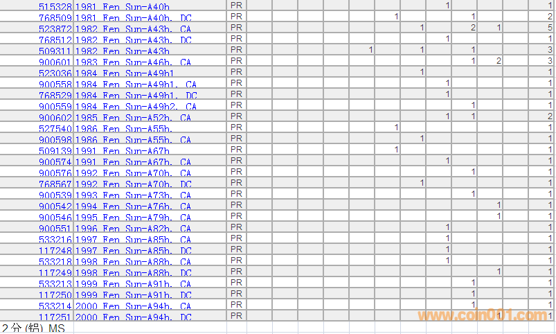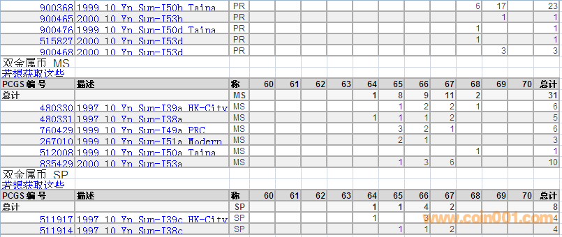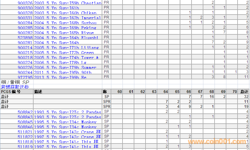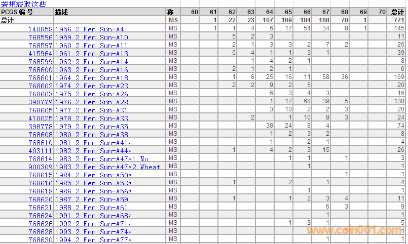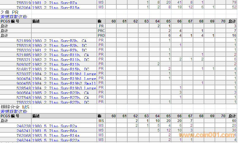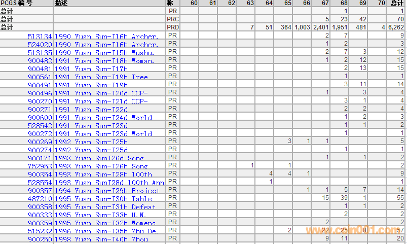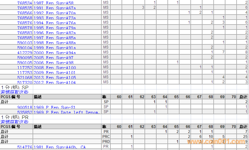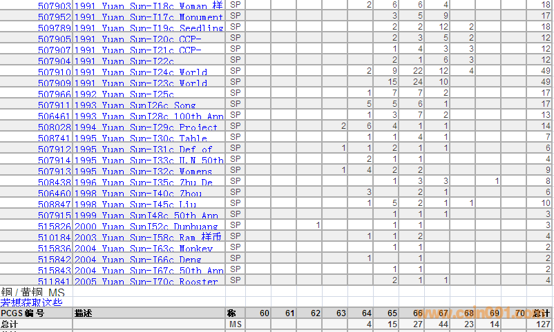 PCGS硬幣評級分?jǐn)?shù)分布 ..