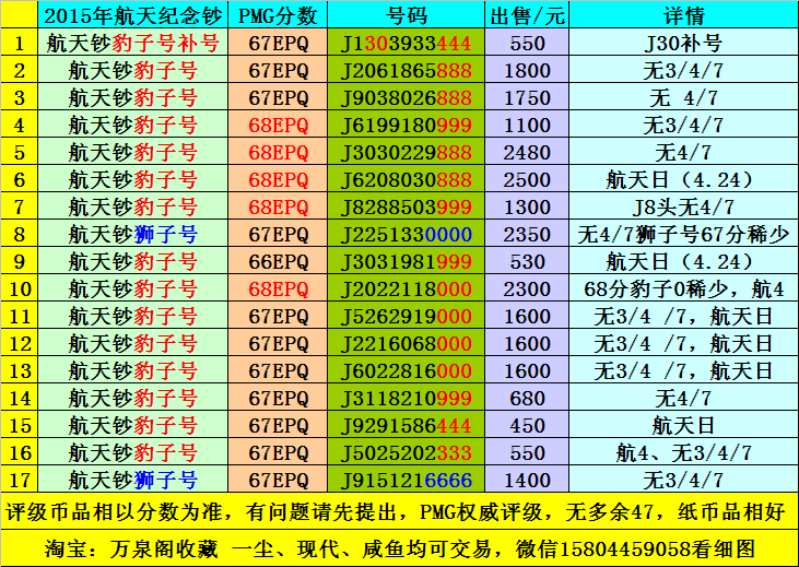 出售:PMG67-68分航天鈔 ..