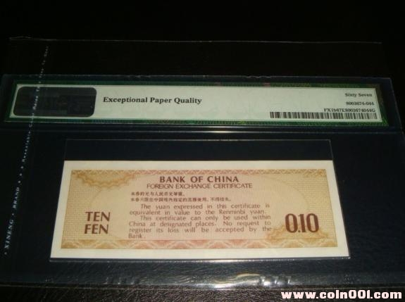 PMG 67分 外匯券壹角火 ..