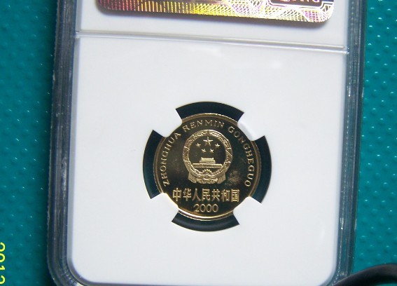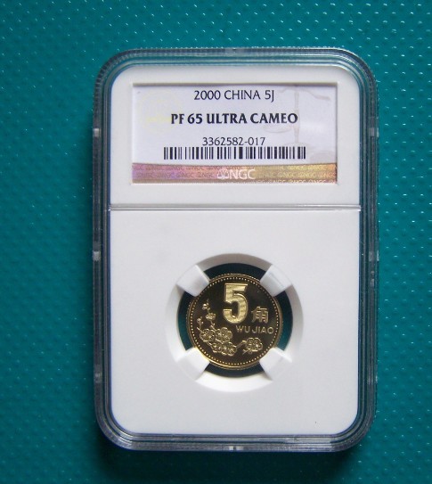 2000年精制5角 PF65UC 950元 正面漂亮,國(guó)徽面有氧化斑(非黑斑,應(yīng)該是主要扣分因素),其余狀態(tài)都非常好