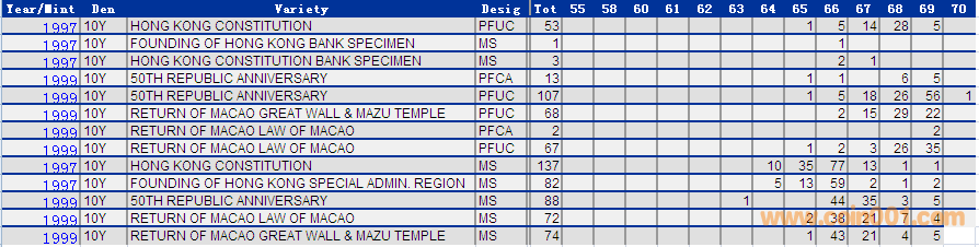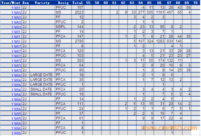 NGC硬幣評(píng)級(jí)分?jǐn)?shù)分布 ..