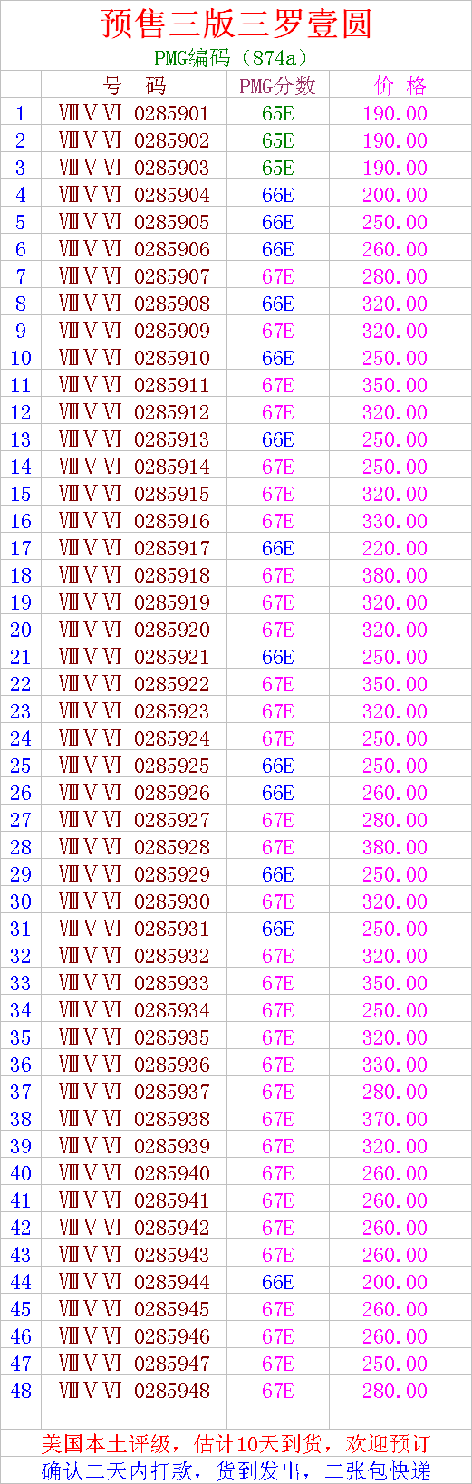 引用 引用第6樓夏日云于2017-06-11 23:04發(fā)表的 :聯(lián)系確認(rèn)67分0385961,962,963三枚