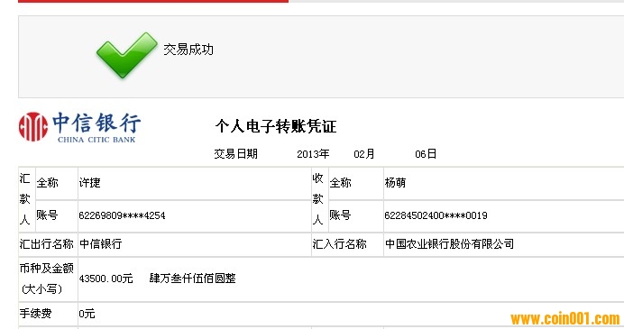 確認(rèn)精制生肖43500元,款已匯農(nóng)行