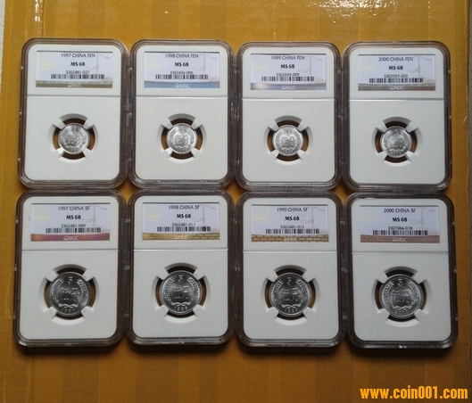 97年--00年1,5分??MS68全套8枚?????????????? 售450X8=3600元