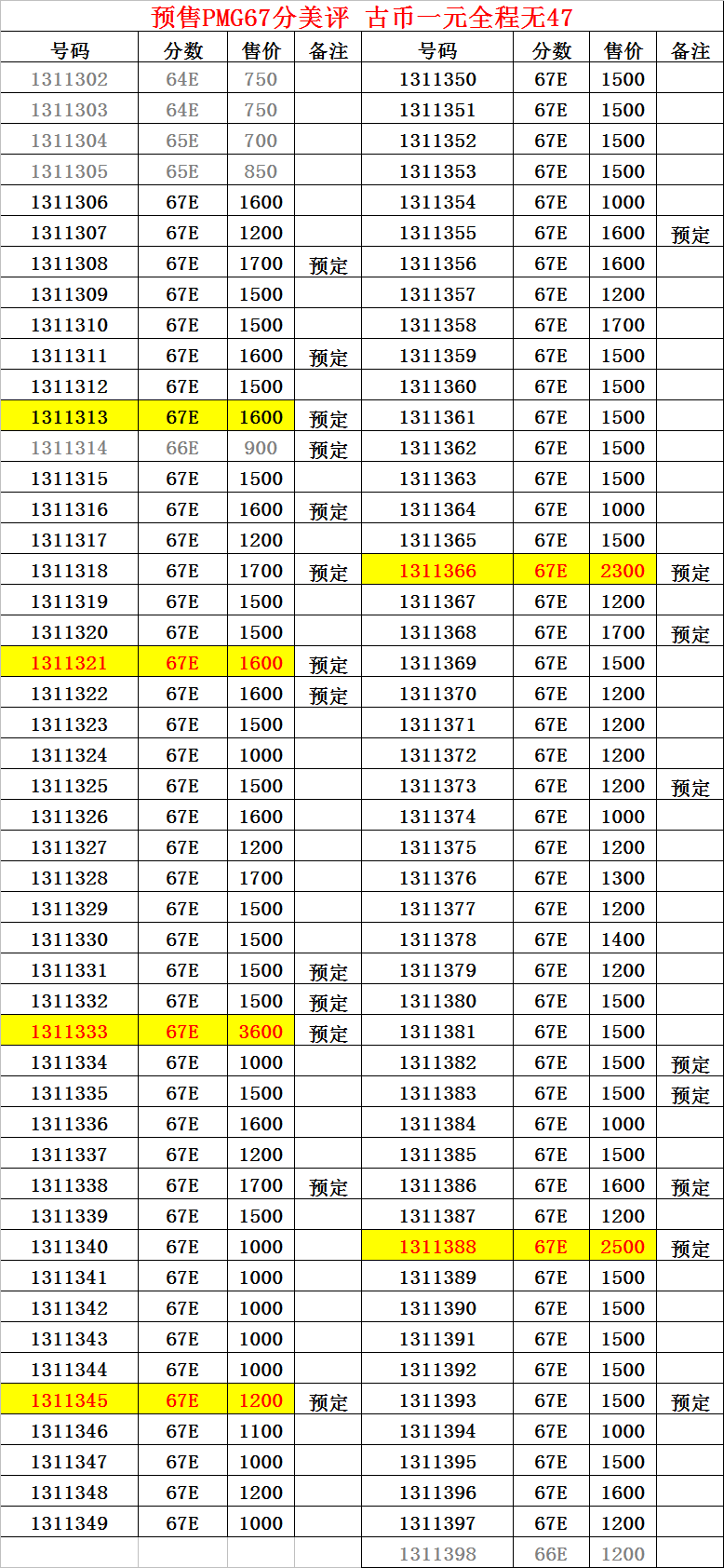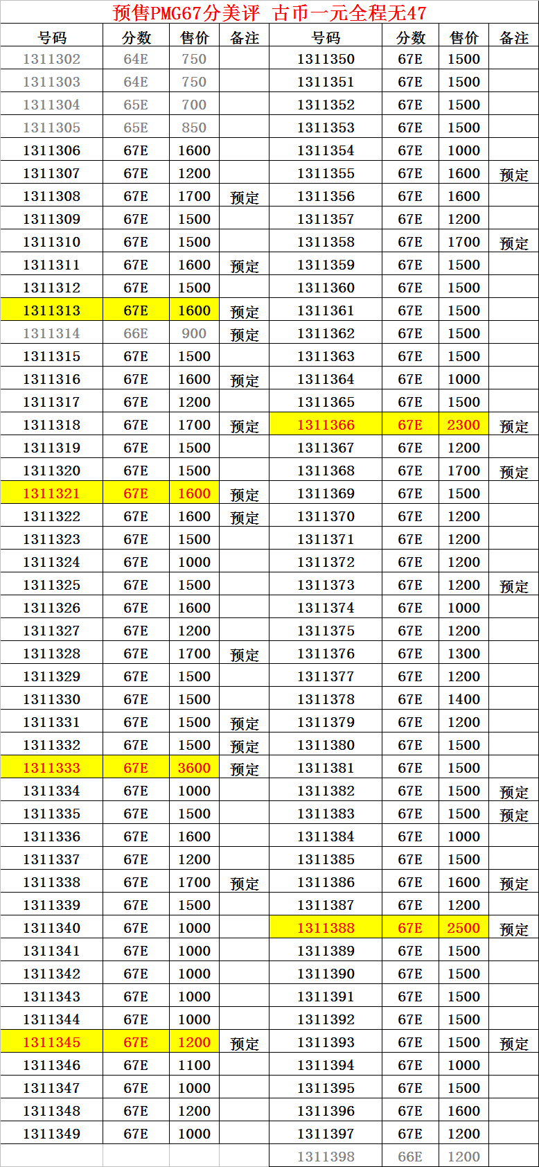 評級普通(精制)紀念幣交易