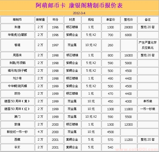 本店所售精制幣全部保真包康銀閣原裝卡冊,備注未注明的整包為一包十套。早期精制幣為非康銀閣的官方指定裝幀單位裝幀。