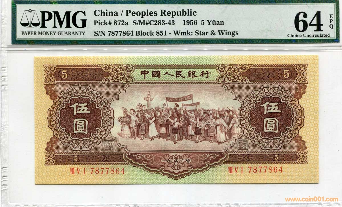 ◆二版幣PMG 黃五元 寶 ..