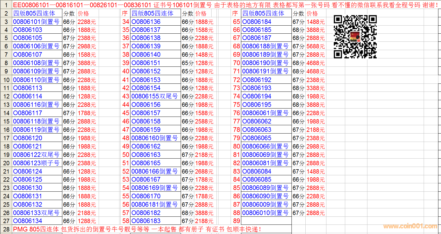 PMG 805四連體 倒置號 ..