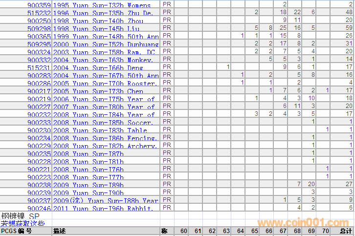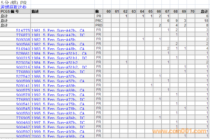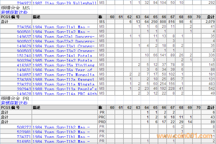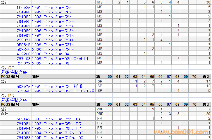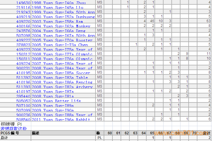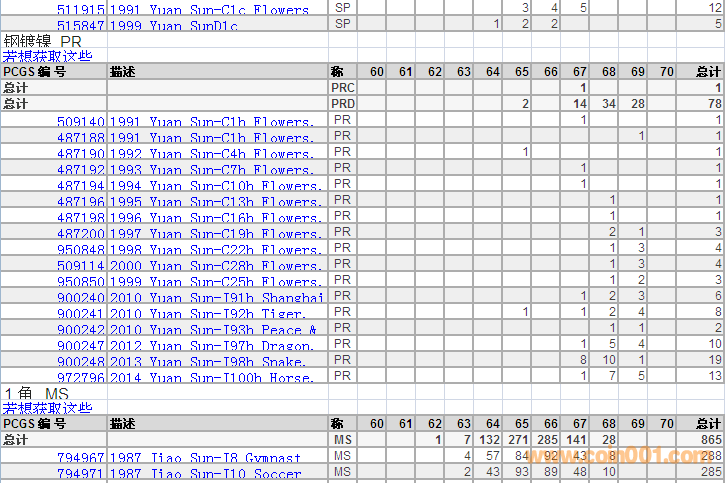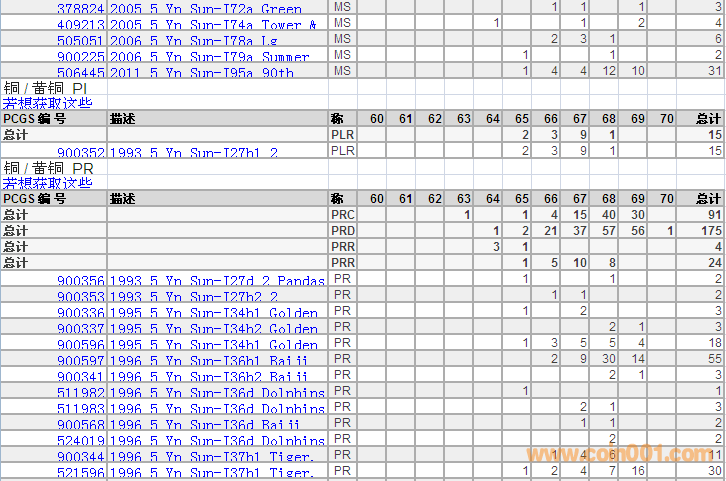 PCGS硬幣評級分?jǐn)?shù)分布 ..