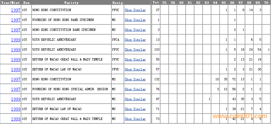 NGC硬幣評(píng)級(jí)分?jǐn)?shù)分布 ..
