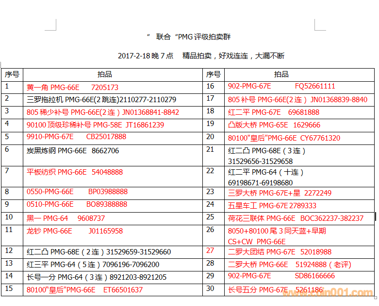 3.本群如果中拍成功不交割的一律馬上踢出,永遠不得進入本群,本群都是PMG界人仕,請記住這類惡意中拍不成交的,沒有任何誠信可言的小人!本群拍賣期間不要發(fā)圖,不要亂出文字,數(shù)字就是您出的價錢,每出一次價錢請考慮清楚,每次出價競拍成功了必須成交!請珍惜自己的誠信,已誠信待人!