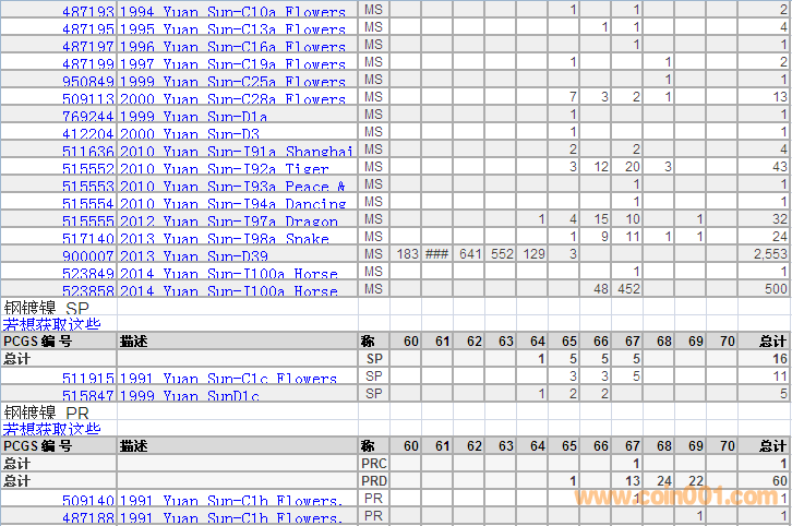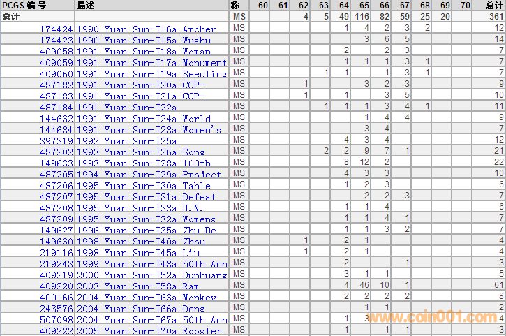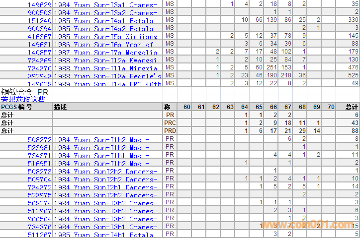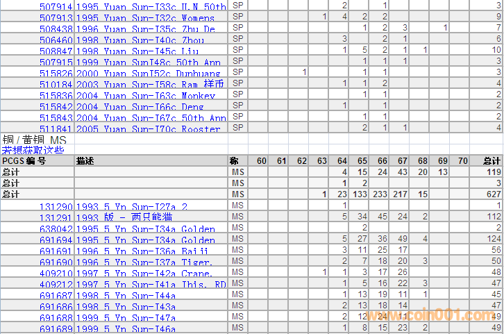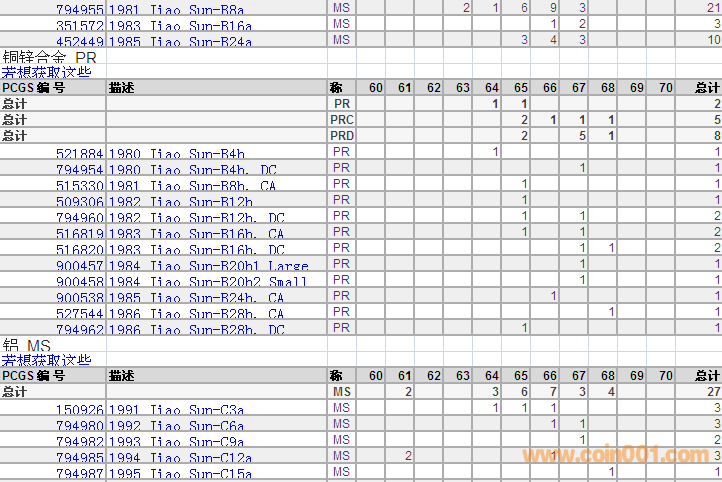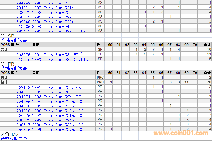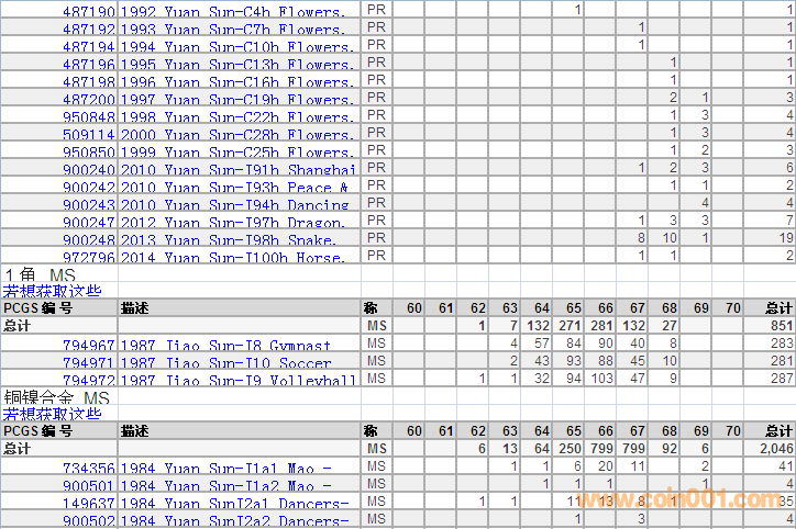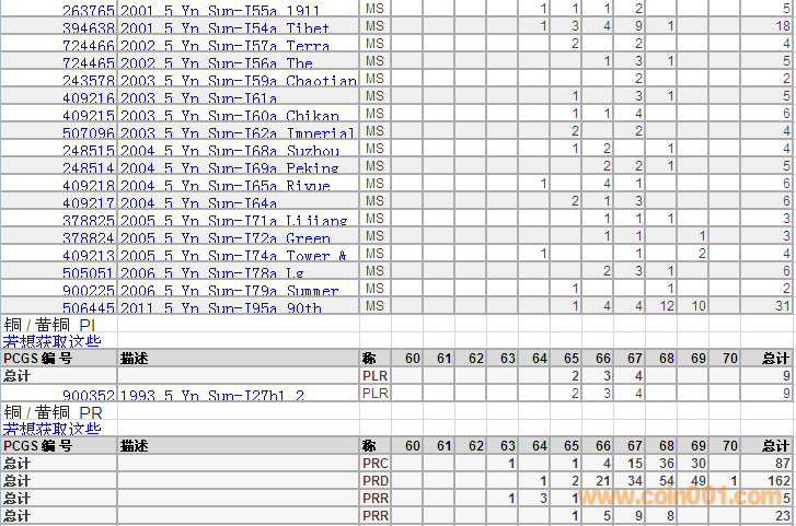 PCGS硬幣評(píng)級(jí)分?jǐn)?shù)分布 ..