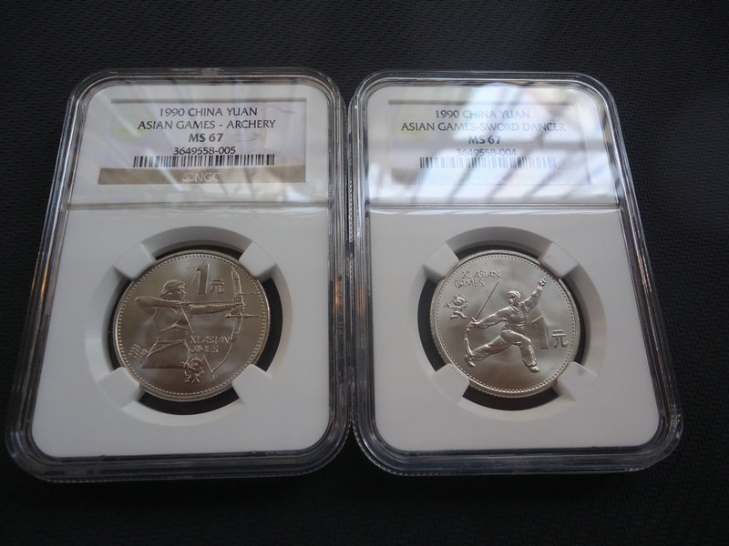 評(píng)級(jí)NGC精制亞運(yùn)會(huì)多,隨處可見,普制少,MS67分同分一對(duì)1000元!