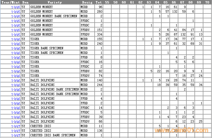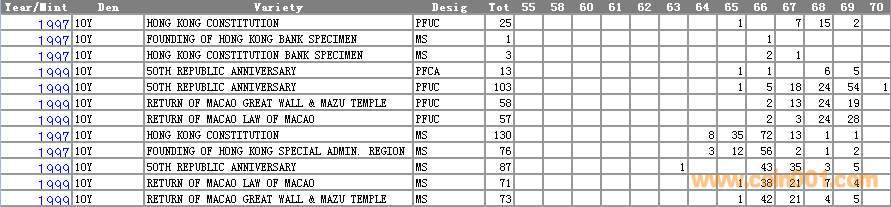NGC硬幣評(píng)級(jí)分?jǐn)?shù)分布 ..