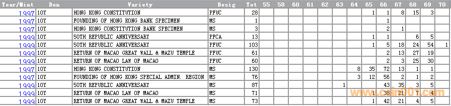 NGC硬幣評(píng)級(jí)分?jǐn)?shù)分布 ..