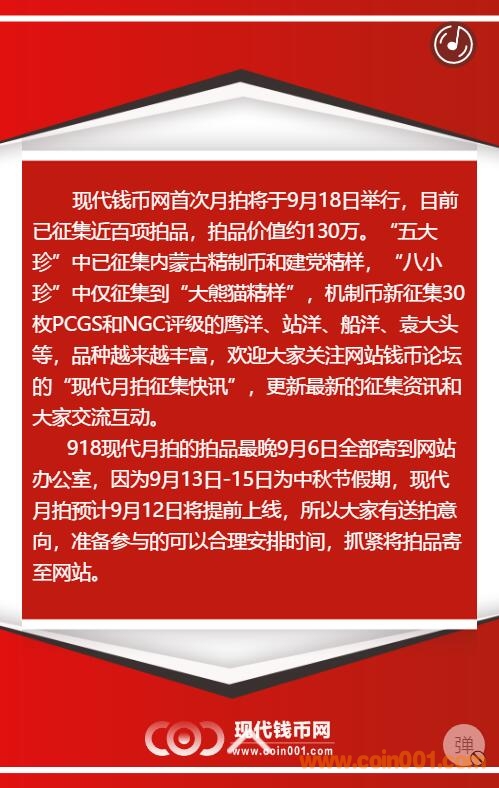 目前共征集約100項拍品,總價值超過150萬,說實話,首次現(xiàn)代月拍的拍品數(shù)量和質(zhì)量均超出預(yù)期。頂尖狀態(tài)的后期精制幣送拍的很少,頂尖狀態(tài)的長城評級幣幾乎沒征集到,經(jīng)歷多次大拍的沉淀,狀態(tài)優(yōu)秀的錢幣被藏友珍藏,即使有副品的藏家也“惜售”,多數(shù)只買不賣。
