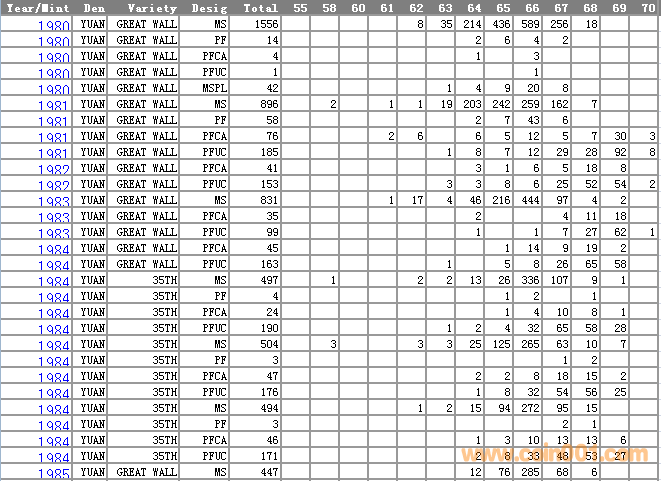 NGC硬幣評(píng)級(jí)分?jǐn)?shù)分布 ..