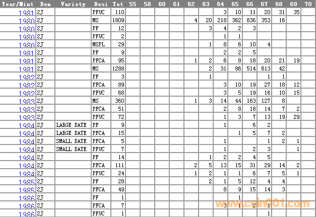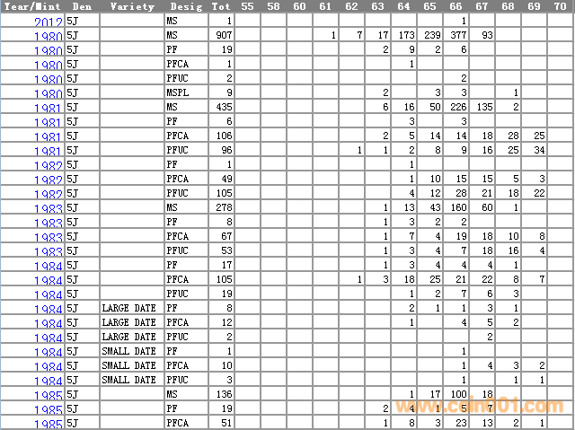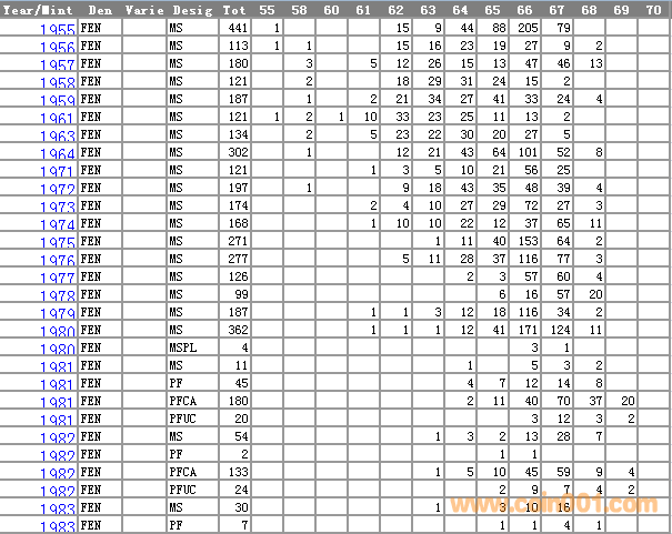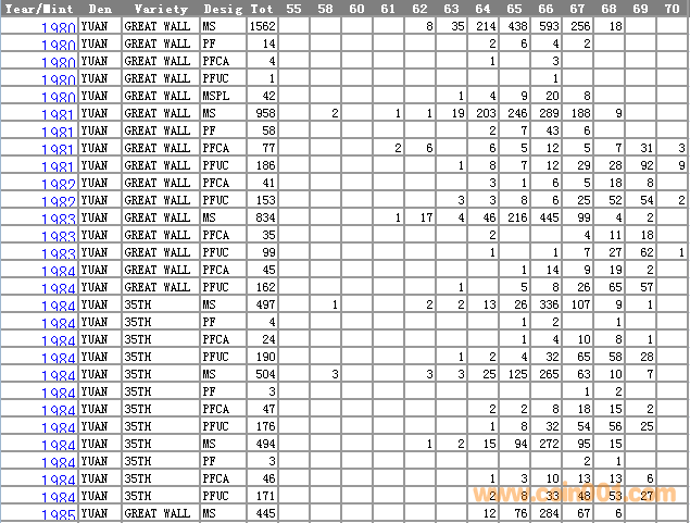 NGC硬幣評級分?jǐn)?shù)分布 ..