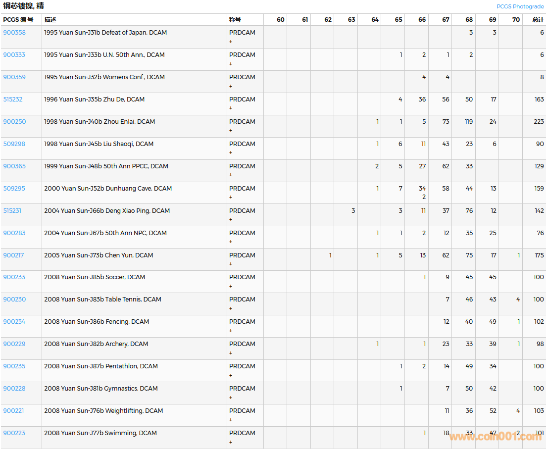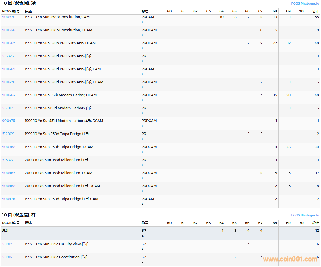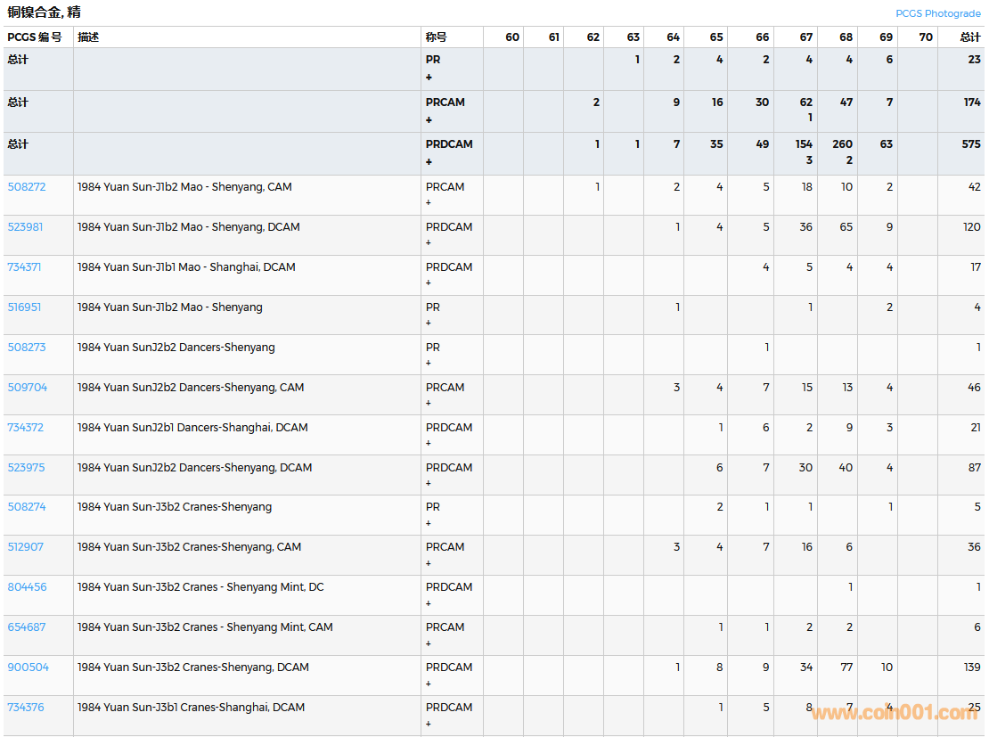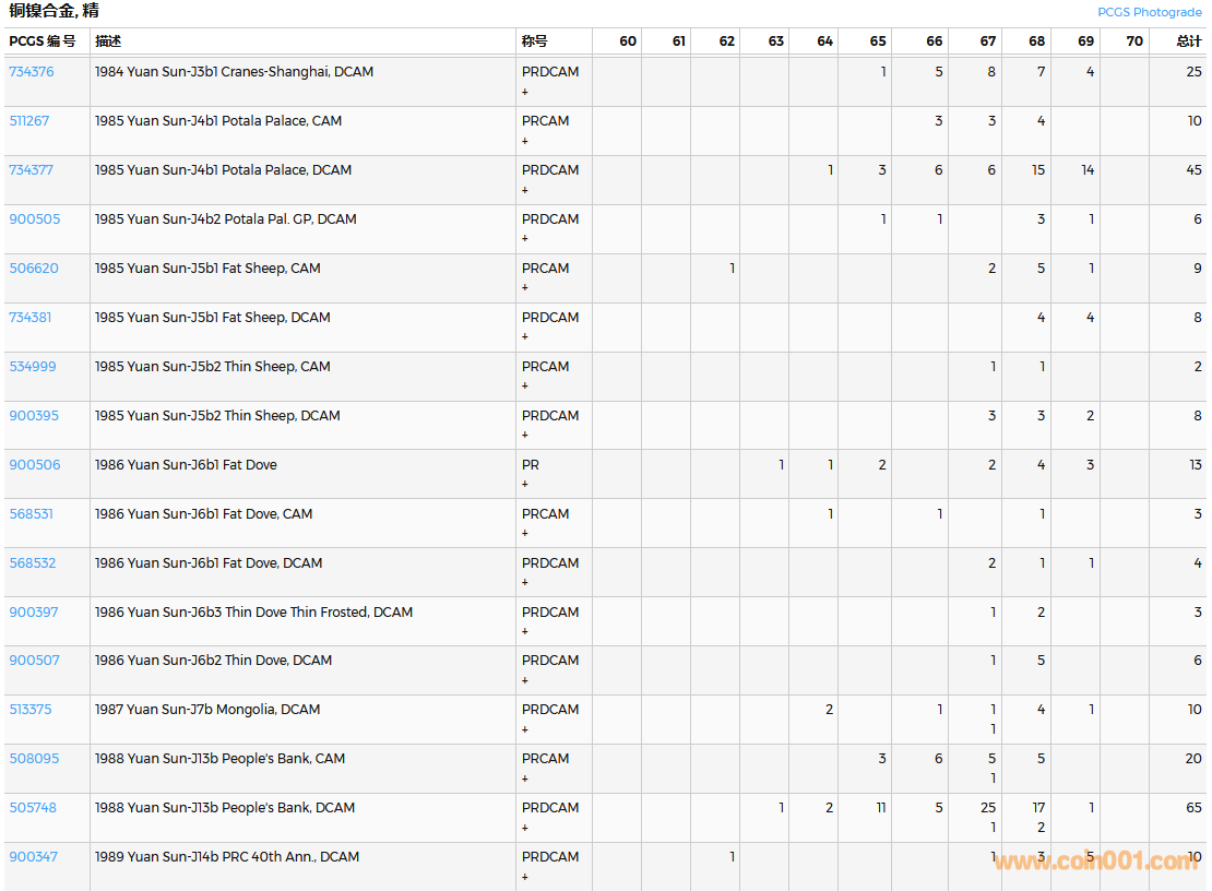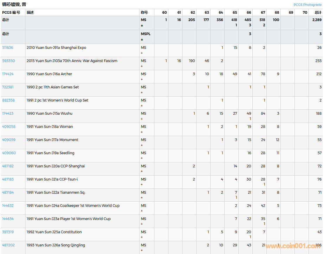 PCGS硬幣評級數(shù)量報告( ..