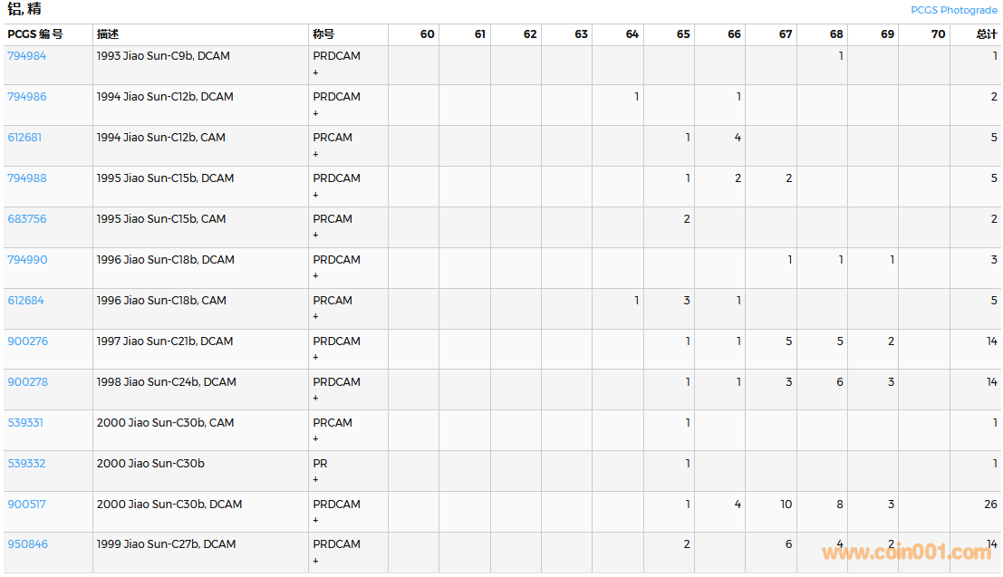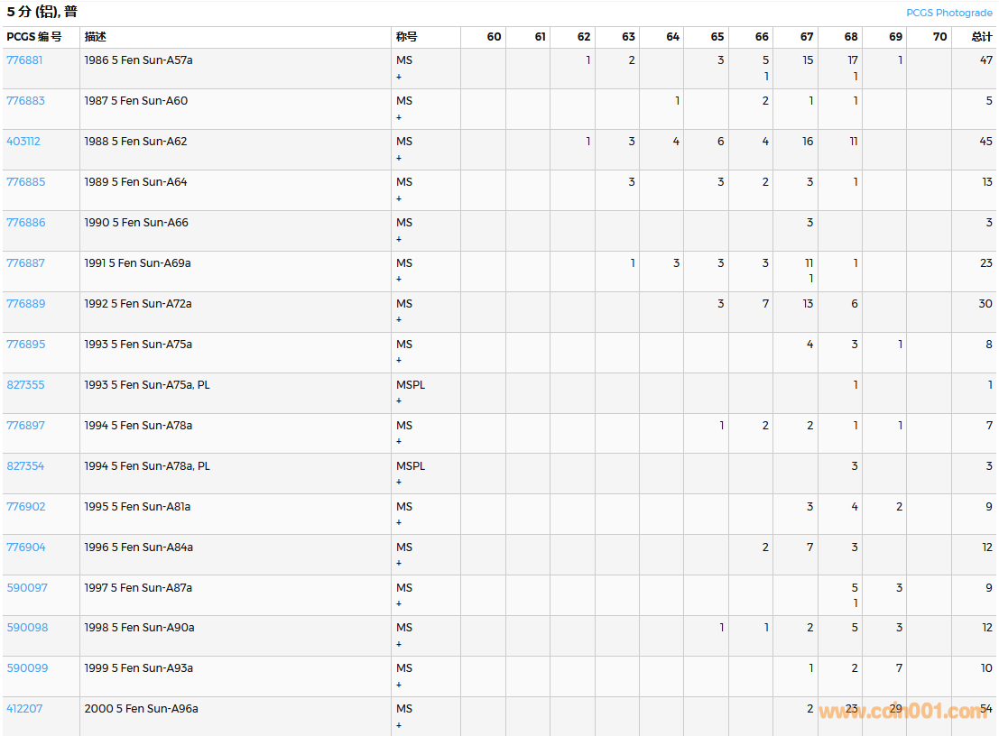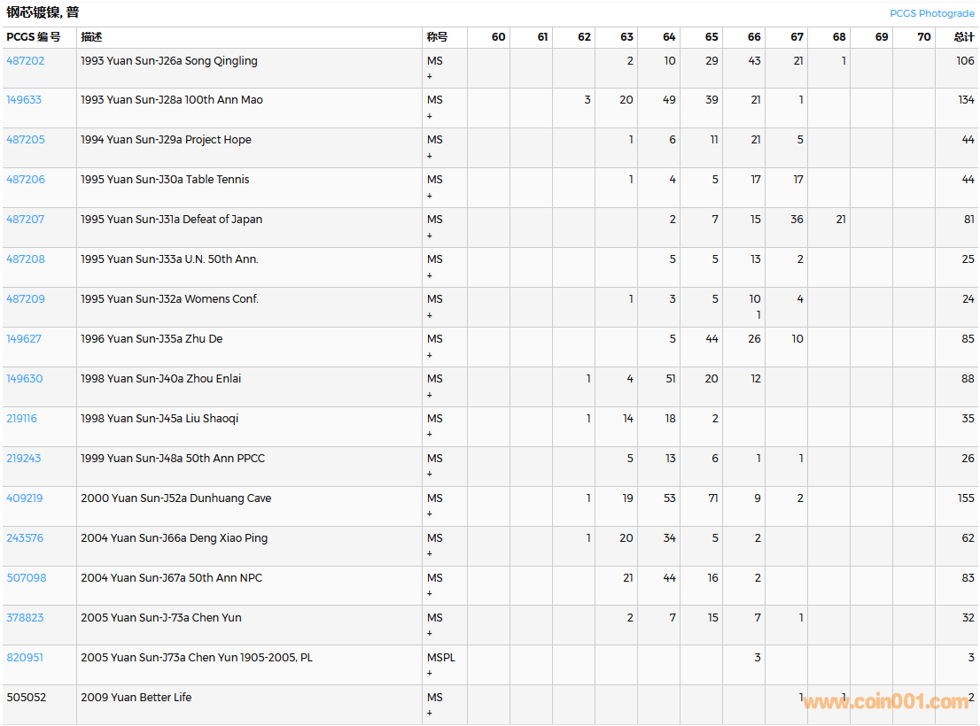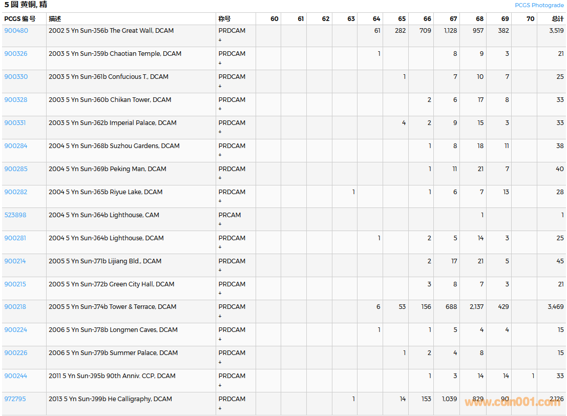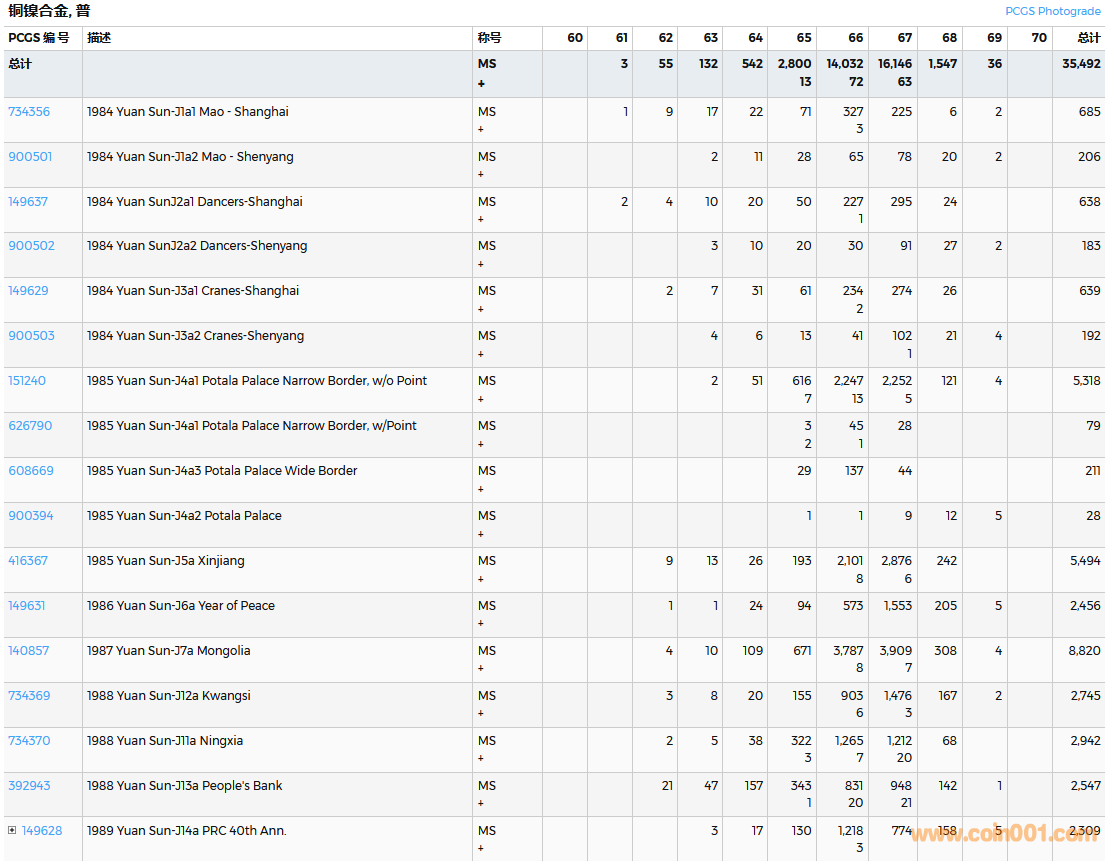 PCGS硬幣評級數(shù)量報告( ..