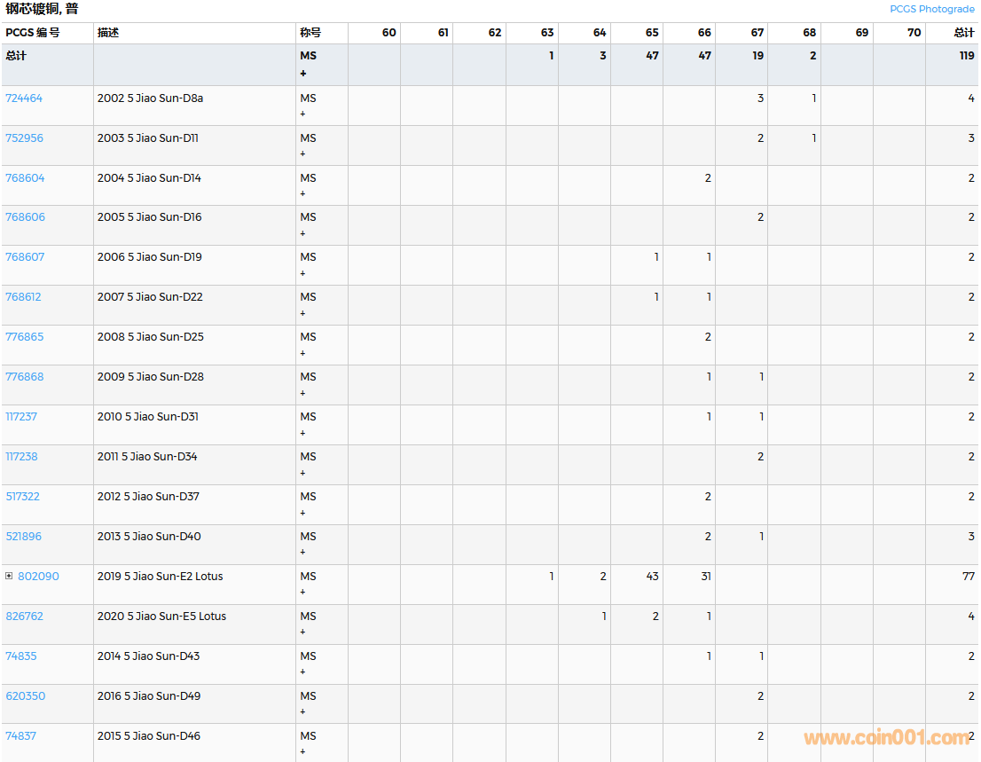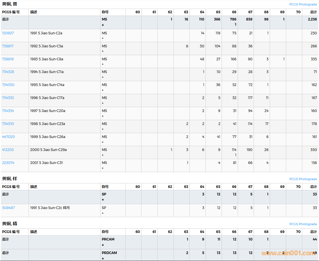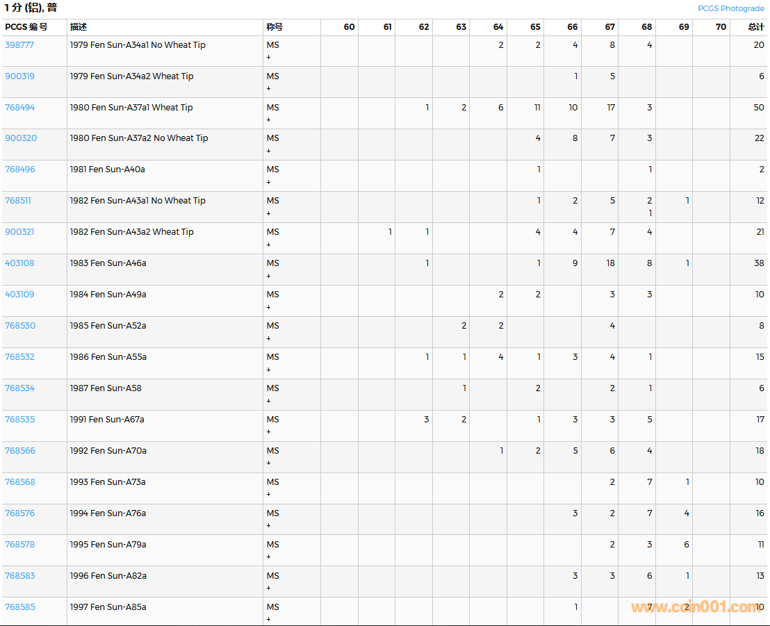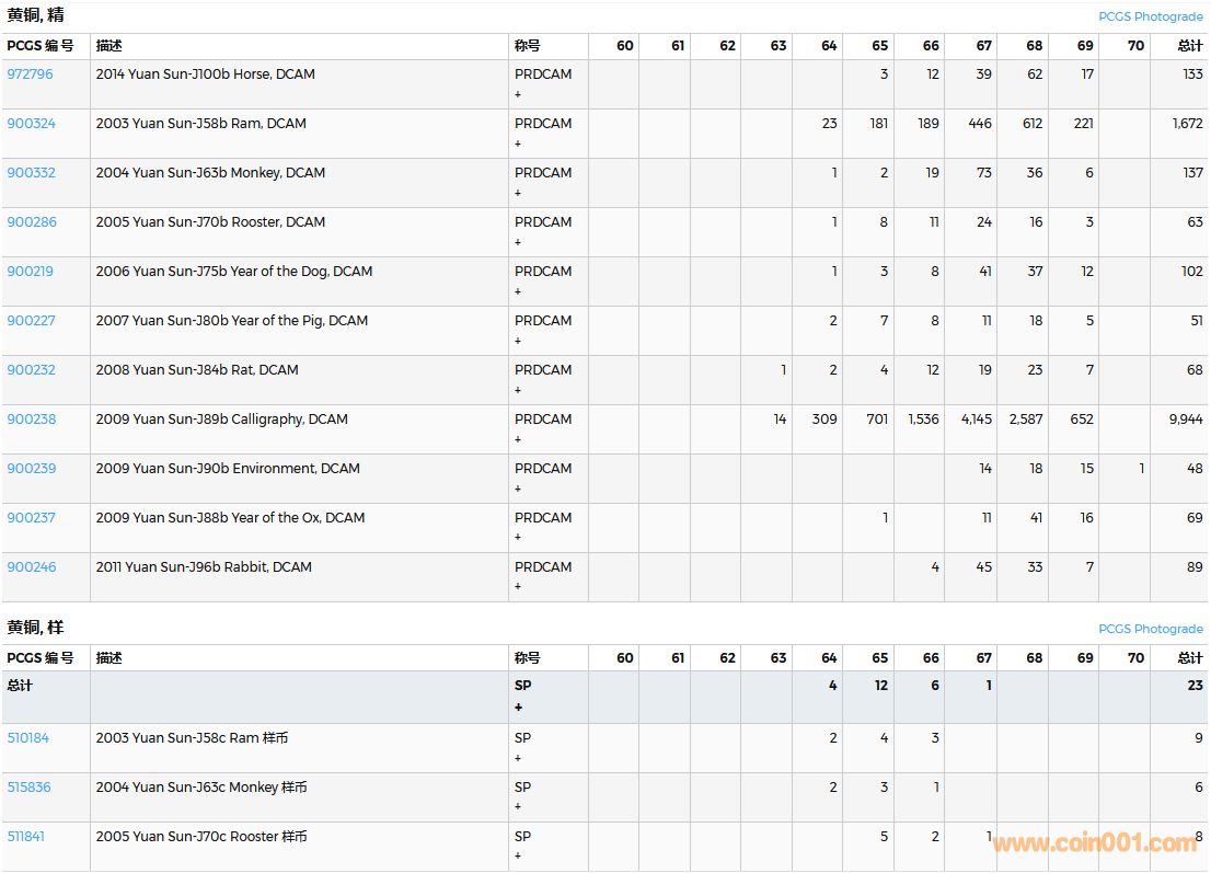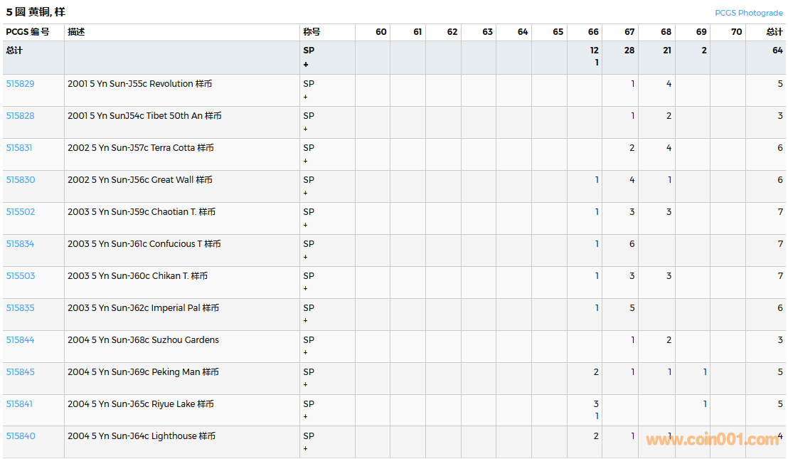 PCGS硬幣評級數(shù)量報告( ..