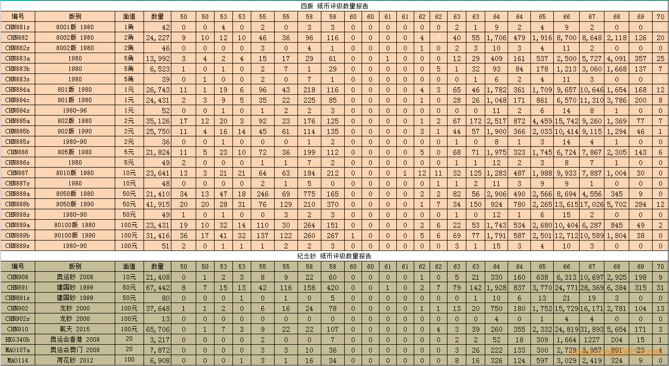 PMG紙幣評(píng)級(jí)數(shù)量報(bào)告