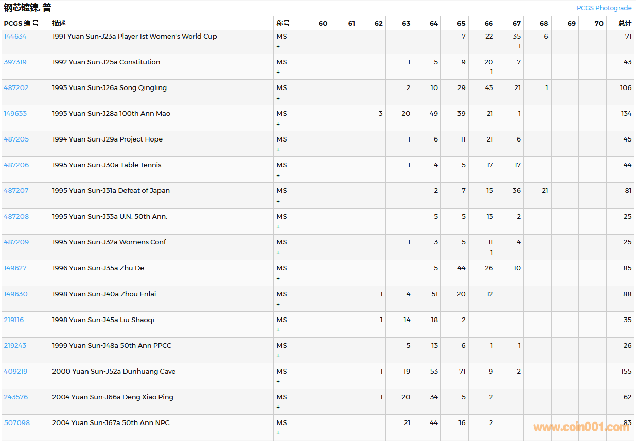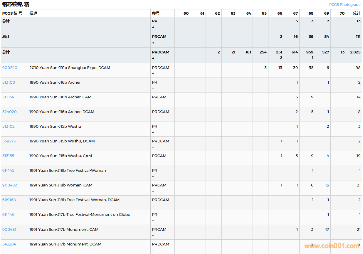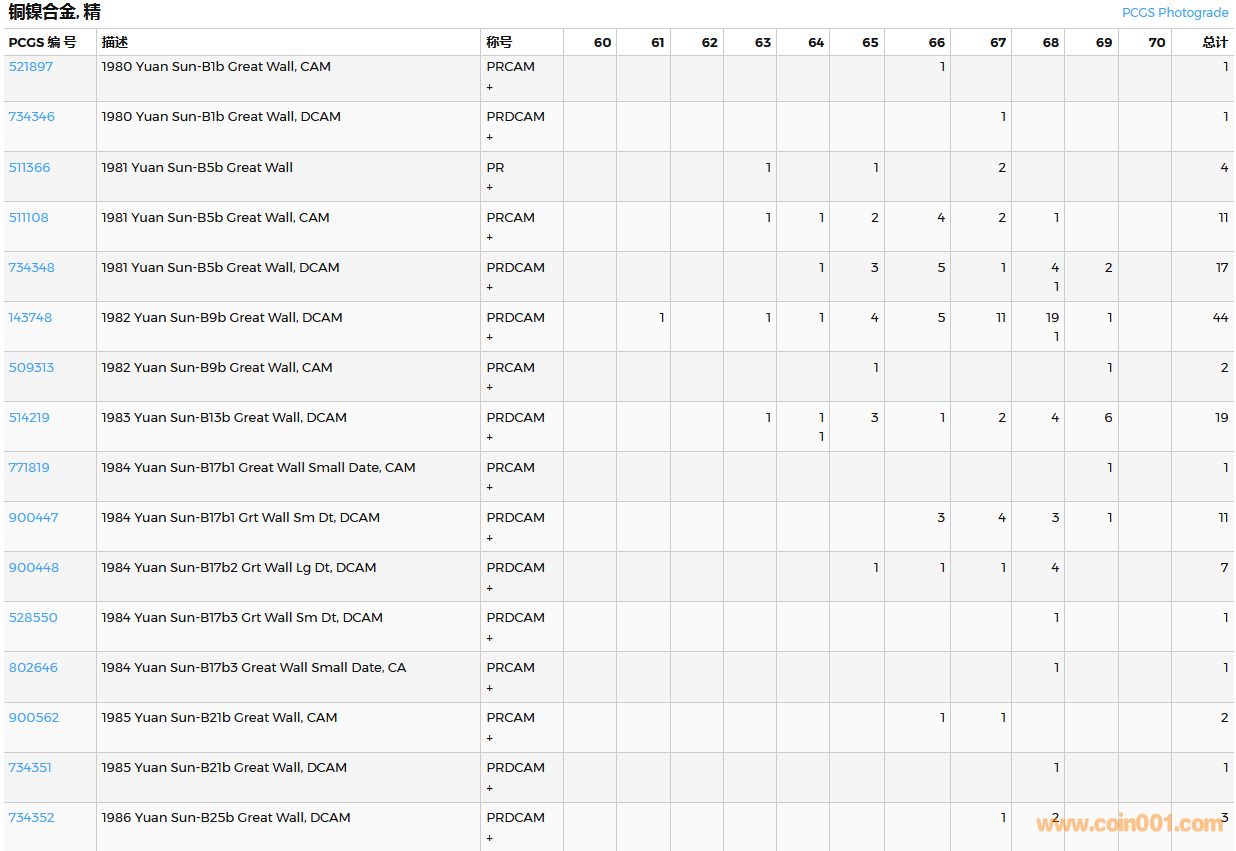 PCGS硬幣評(píng)級(jí)數(shù)量報(bào)告( ..