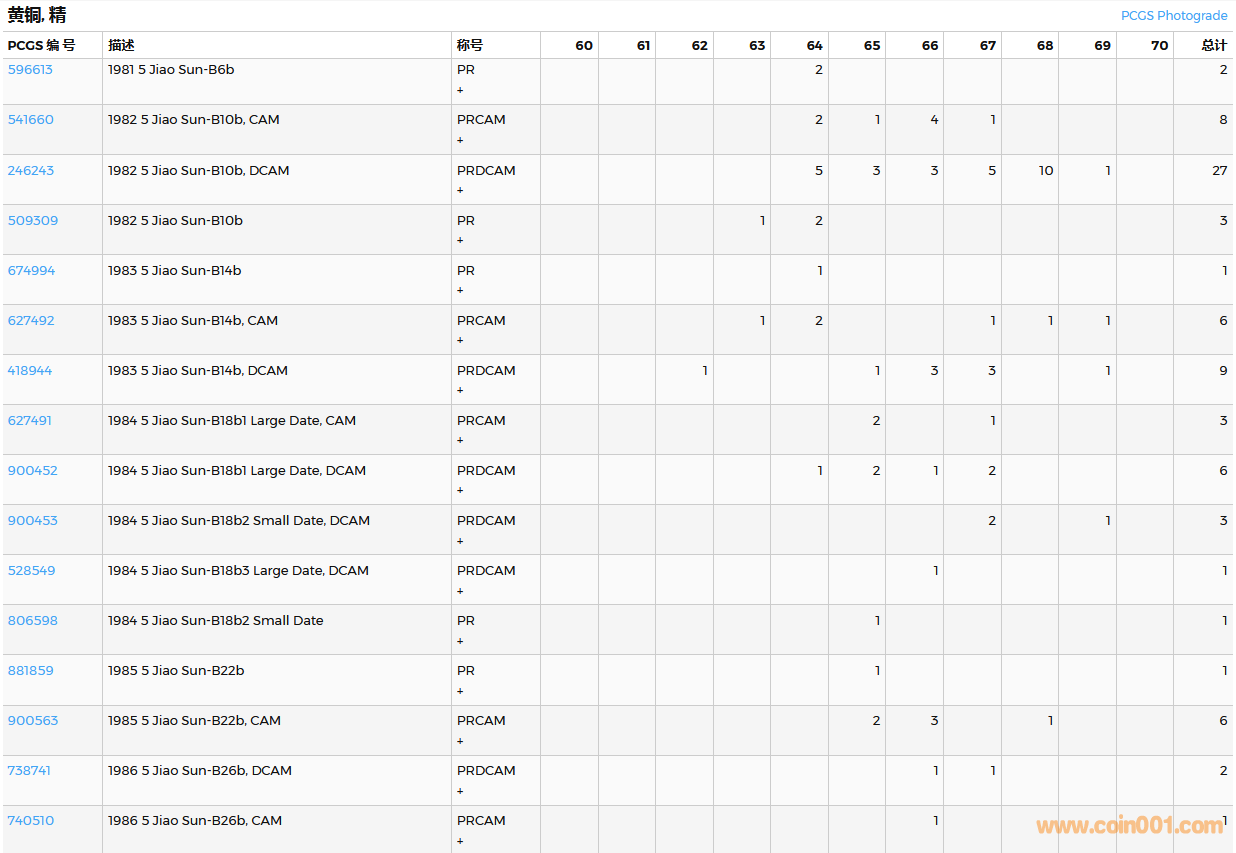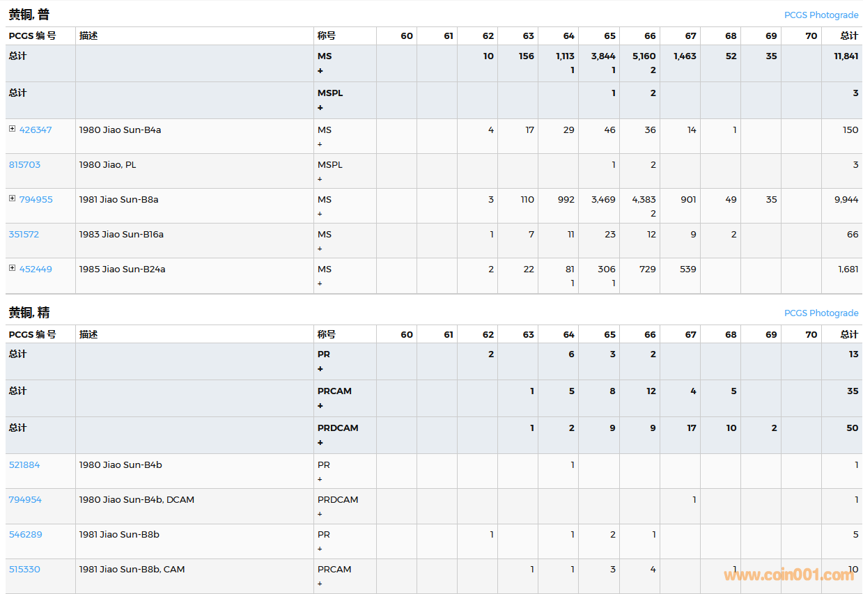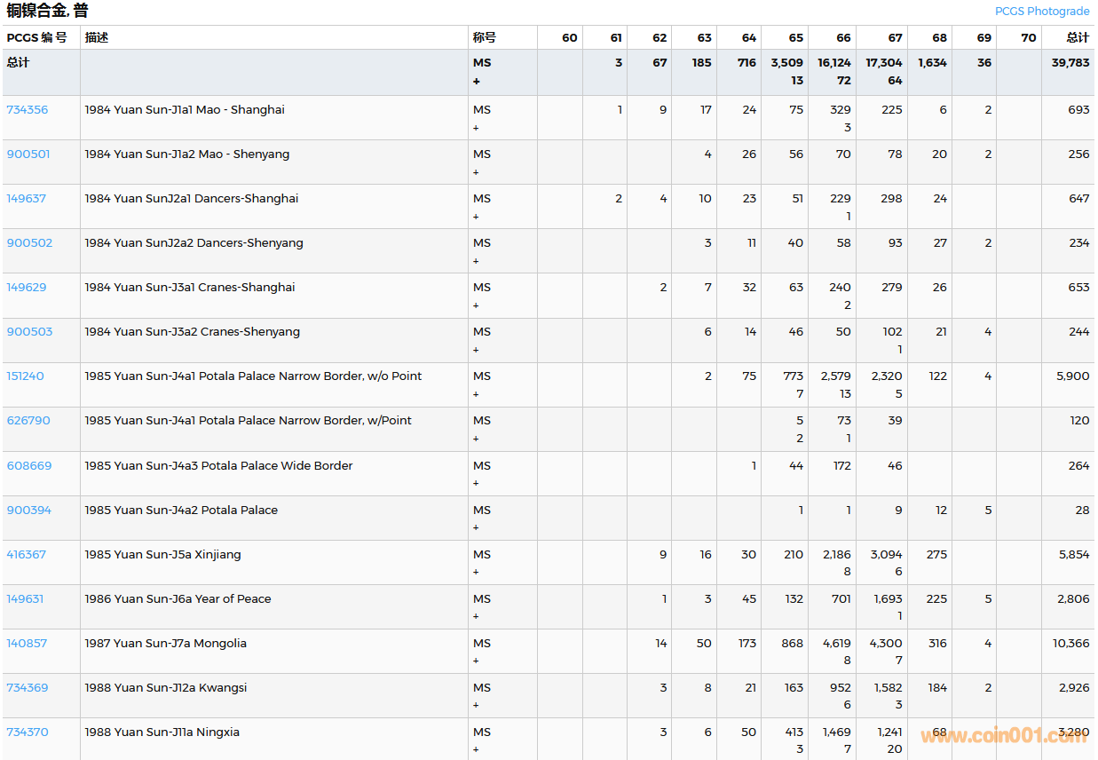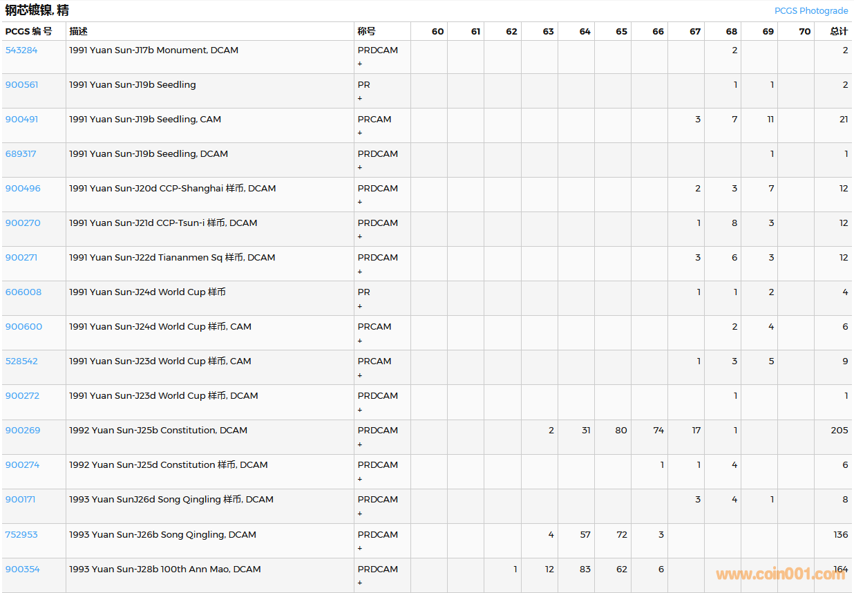 PCGS硬幣評(píng)級(jí)數(shù)量報(bào)告( ..