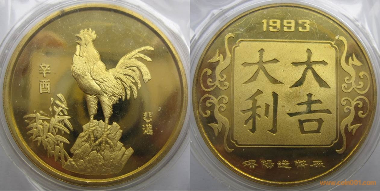 1985年制造,鍍金精制33mm,上幣發(fā)行。正面為牛,反面為孔雀。此枚章為二輪牛小班別,十分罕見.這枚章為海外回流,估計為造幣廠早期為海外所制造。