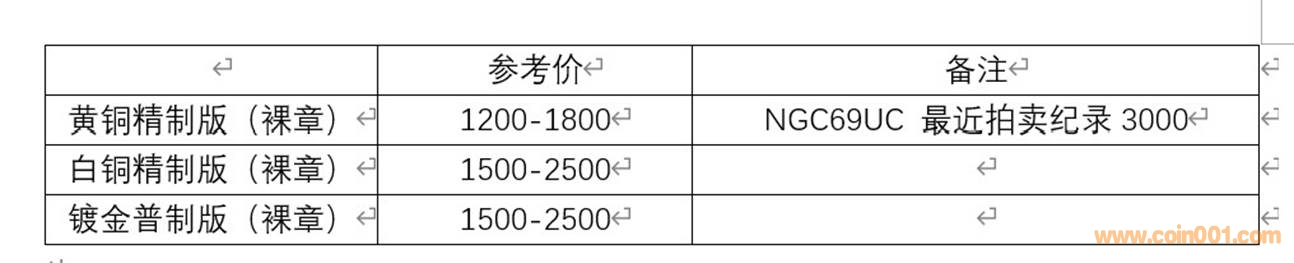 紫銅普制版 參考價:8000-14000