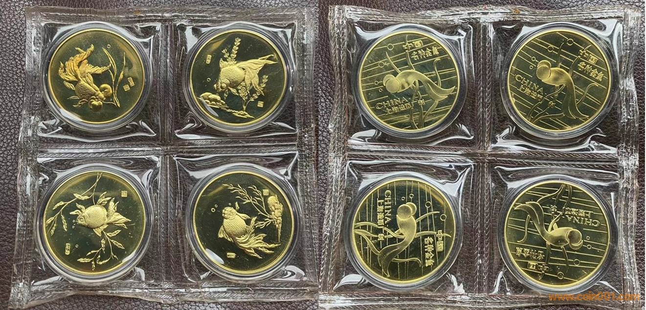 1984年制造,36mm,上幣發(fā)行。正面為金魚抽象圖案,反面為龍睛,高頭,水泡眼,珍珠。