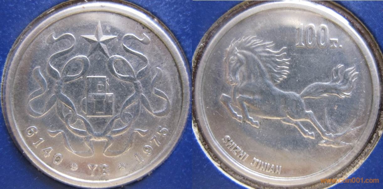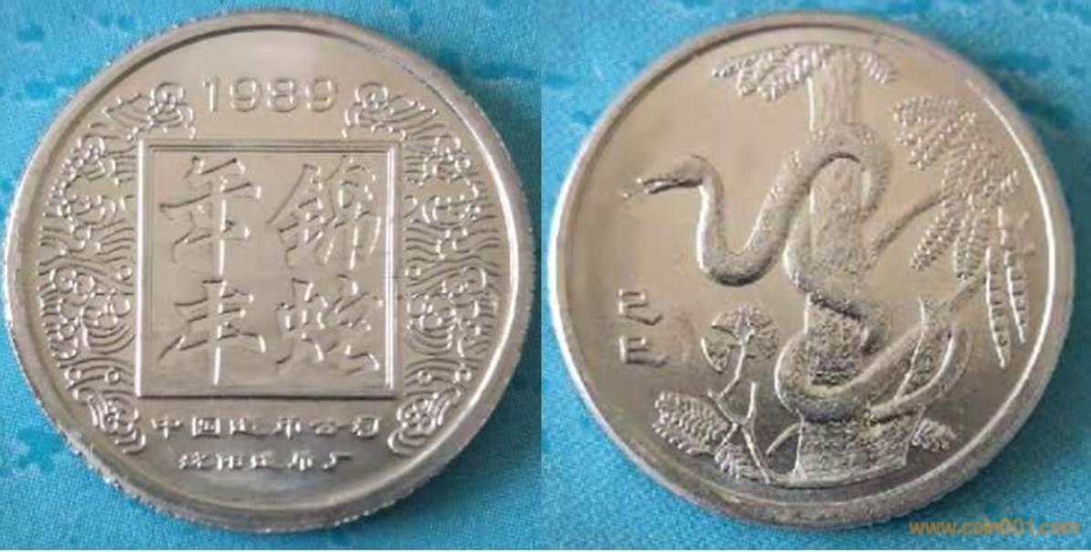 1985年制造,白銅普制30mm,上幣發(fā)行。正面為牛頭,反面為福字。